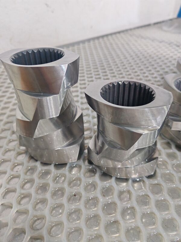 Двухшнековые экструдеры: Резьбовые элементы обеспечивают эффективное смешивание и транспортировку материалов посредством зацепления.